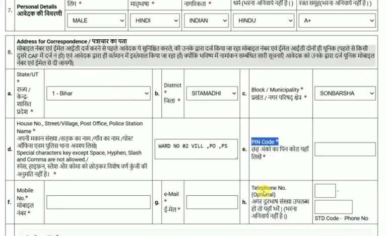 - इसके बाद आप अपना पूरा एड्रेस भर जिसमें राज्य जिला ब्लाक गांव पोस्ट ऑफिस पुलिस स्टेशन और पिन कोड शामिल होगा।