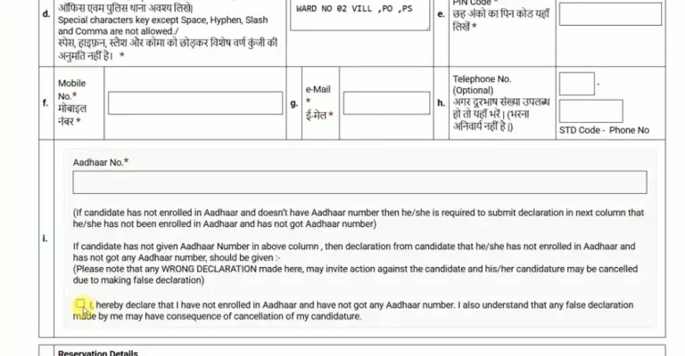 - इसके बाद अपना मोबाइल नंबर ईमेल आईडी और आधार कार्ड नंबर दर्ज करें।