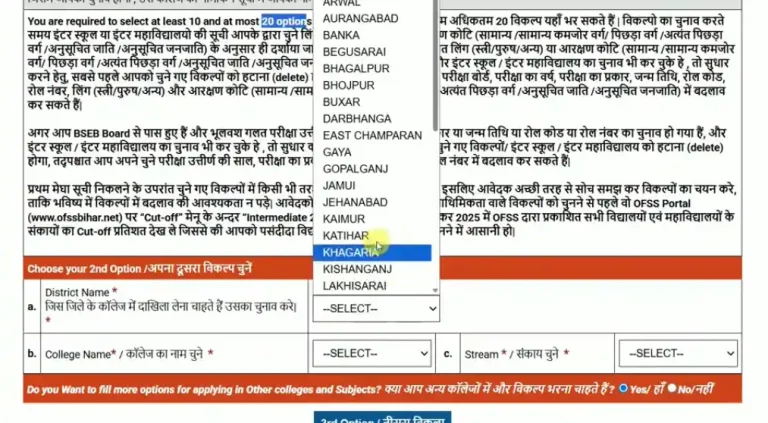 - इसके बाद आपके सामने महत्वपूर्ण स्टेप्स जो आता है आपको अपना जिला चुनना होगा जहां आप 11वीं में एडमिशन को लेना चाहते हैं।