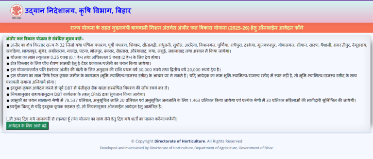 सभी इच्छुक आवेदक को जानकारी दें कि बिहार बोरिंग समरसेबल पंप योजना 2025 में अप्लाई करने के लिए प्रत्येक भाई एवं बहनों को किसान भाई एवं बहनों को ऑनलाइन आवेदन की प्रक्रिया को अपनाते हुए आवेदन करना होगा जिसकी पूरी जानकारी आपको हम इस पोस्ट में बताएंगे ताकि आप इस योजना में जल्द से जल्द आवेदन करके इस योजना के तहत पंप सेट के लिए सब्सिडी का लाभ भी प्राप्त कर सके।